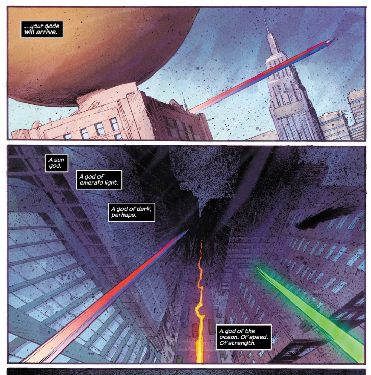 15. In Thor #2 by Donny Cates, we get a glimpse of some streaks of colored lights, symbolizing DC characters, and finally, the end of the unnamed universe (which everyone thinks is symbolized as DCU). Now this was a tragic crossover as per the entity from Marvel annihilating the alternate reality, supposed to be the DCU. Lol, looks like Marvel got tired of the cameos given to-and-fro by both the houses!