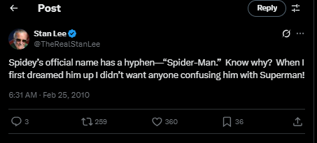 Stan Lee himself had stated this reason on an X post, confirming that the name wouldn’t be mistaken for Superman if the ‘hyphen’ existed before ‘Man’.