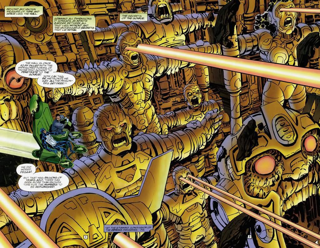 The Source Wall, in the early tales by Jack Kirby and Gerry Conway, was a metaphysical barrier with the Promethean Giants strewn throughout.