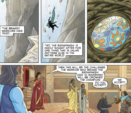 The issue reveals an untold story, before the events of the movie, when the young princes Baahubali and Bhallaladeva participate in an epic and deadly tournament of champions against some fearsome warriors from around the world. Getting the egg of a legendary ratnapakshi alone can save Sivagami and her kingdom of Mahishmati’s honor. So, with everything at stake, both brothers decide to succeed where many have failed, and the price for failure is nothing less than death!