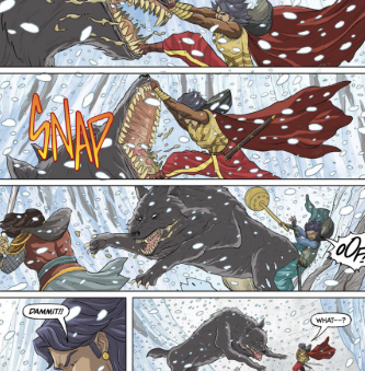 The comic’s storyline is adventurous and a fun read, syncing the character’s presence as it should. It captures the movie’s essence, making the read intriguing and worth its time! It has Devasena’s first chronological appearance in respect to the Baahubali universe, albeit there’s a minute factor that seems to counter the movie storyline a bit, but it’s still okayish, I guess, to ignore it for now!